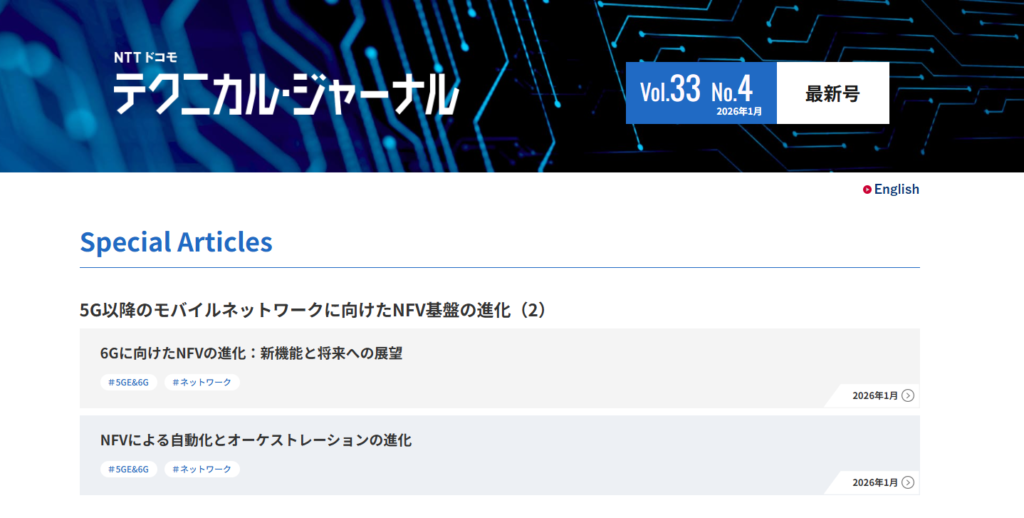 DOCOMO’s Technical Journal (DTJ) issue in October 2025 includes dedicated NFV-related articles, which have been edited and led by contributors at DOCOMO Euro-Labs.